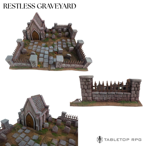 The Restless Graveyard brings eerie silence and ancient dread to your tabletop adventures. This detailed modular set features a crumbling stone cha...