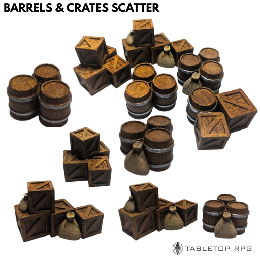The Barrels & Crates Scatter Pack adds life and authenticity to your tabletop world. This versatile collection of supply crates, weathered barr...