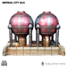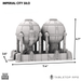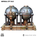 Twin reinforced storage domes rise from the inner city, wrapped in pipes, vents, and armored supports built for relentless supply demands. Their dense industrial bulk makes them an excellent line-of-sight blocking structure, choking long corridors and denying clear firing lanes. In the Imperial City, even storage is built to control movement and the battlefield.